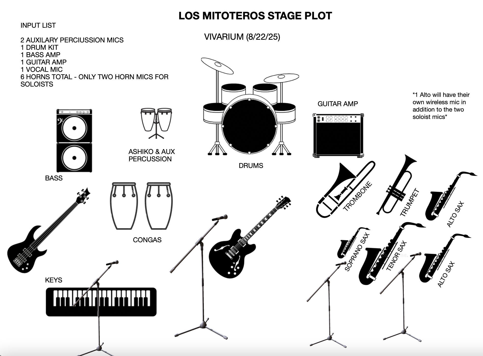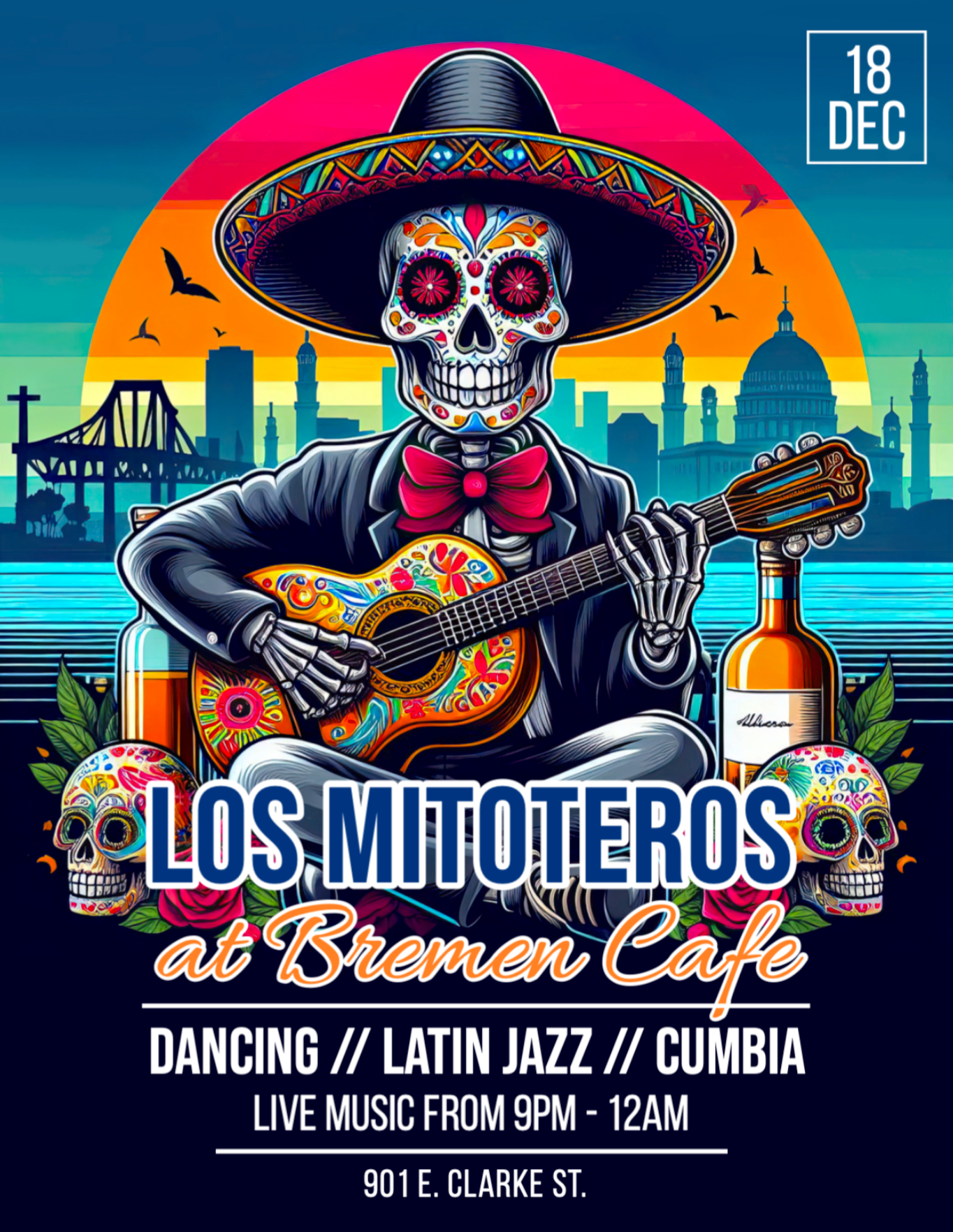 Los Mitoteros are a Milwaukee-based Latin ensemble built around rhythm, melody, and a little beautiful chaos. The core group moves like a tight band—drums, congas, bass, guitar, and keys—then expands or strips down depending on the room, with a rotating horn section when the moment calls for it.